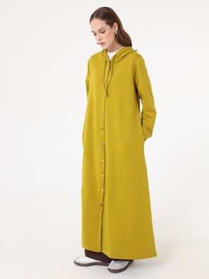 Benin Kapüşon Detaylı Çıtçıtlı Spor Kap / Pardesü Zeytin Yağı