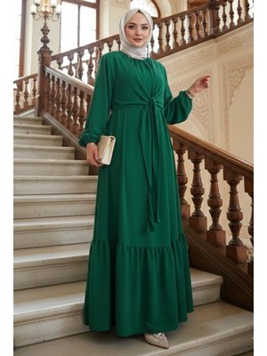 Hafsa Mina Yeşil Bağlama Detaylı Ayrobin Elbise