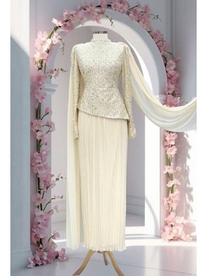 Amine Hüma Ekru Masal Abiye Elbise