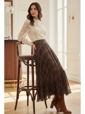 Benguen Kahverengi Yoryo Şifon Etek