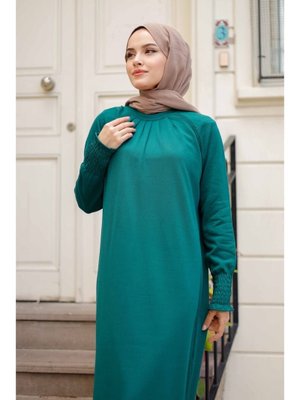 Pamuk Butik Merserize Pileli Gipe Detaylı Triko Elbise