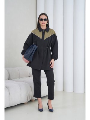 Volt Clothing Haki Çizgi Geçişli Fermuar Detaylı Takım Siyah