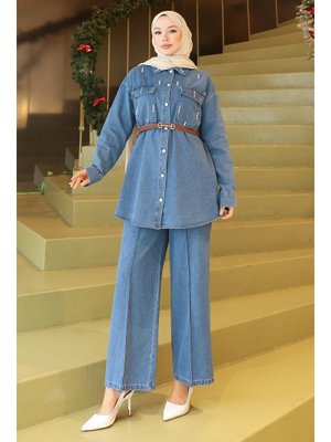 MODAMİHRAM Açık Mavi Cepli Taş Detaylı Kot Takım