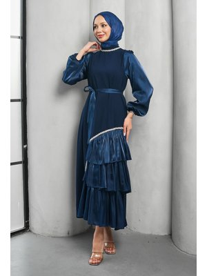 İmaj Butik Lacivert Fırfır Detay Organze Taş İşleme Abiye Elbise