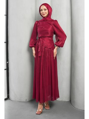 İmaj Butik Mürdüm Drapeli Piliseli Abiye Elbise