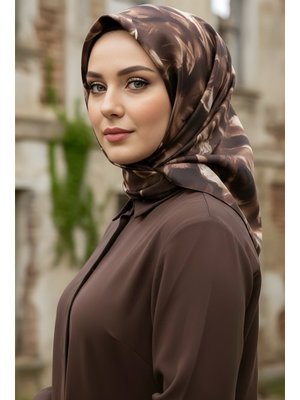 İmaj Butik Kahverengi İpekhan Soft Dijital Pamuklu Eşarp