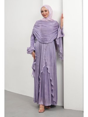 İmaj Butik Lila Seyyar Pelerinli Fırfırlı Abiye Elbise