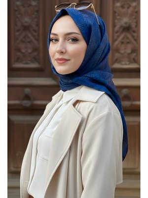 İmaj Butik Mavi Soft Dijital Pamuklu Eşarp