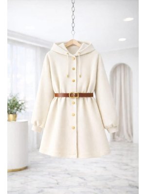 Volt Clothing Krem Gold Düğme Kemer Detaylı Hırka