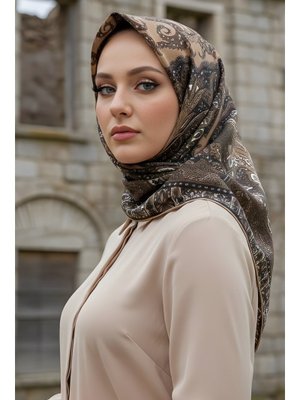 İmaj Butik Haki/vizon İpekhan Soft Dijital Pamuklu Eşarp