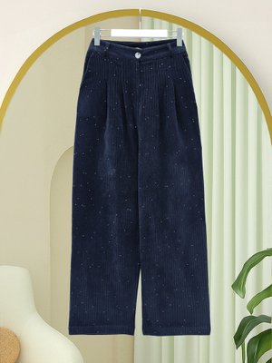 Podyumplus Laci Cepli Bol Paça Pul Detaylı Kadife Pantolon