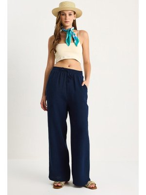 Bianco Lucci Lacivert Müslin Palazzo Pantolon