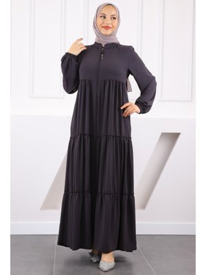 İmaj Butik Füme Kol Lastikli Katlı Ferace