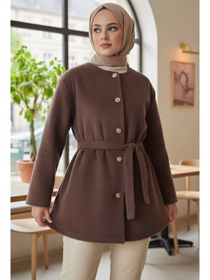 Tofisa Vizon Vızon Değmeli Kuşaklı Kaşe Ceket