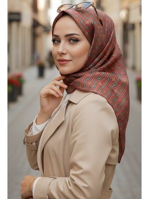 İmaj Butik Kırmızı Vizon Soft Dijital Pamuklu Eşarp