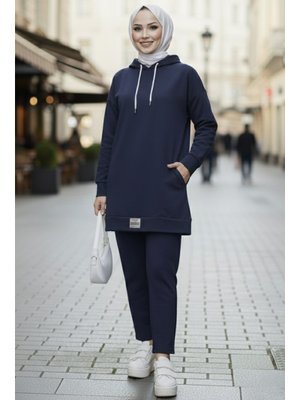 Bestenur Lacivert Çift Cepli Kapüşonlu İkili Takım