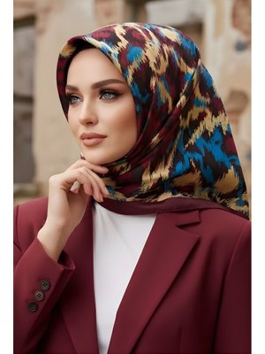 İmaj Butik Mavi/vişne İpekhan Soft Dijital Pamuklu Eşarp