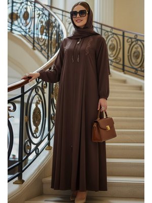 Neva Style Fermuarlı Kahverengi Ferace 45311kh