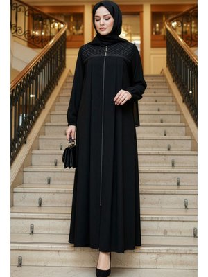 Neva Style Fermuarlı Siyah Ferace 45313s