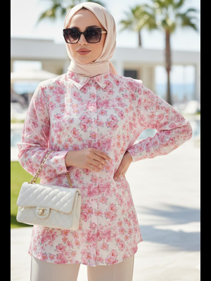 Neva Style Çiçek Desenli Pembe Tunik 26608p