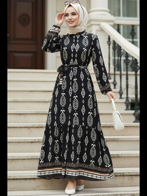 Neva Style Desenli Siyah Elbise 24085s