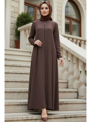 Neva Style Fermuarlı Kahverengi Abaya 45319kh