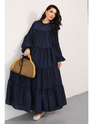 Salih Çelebi Lacivert Katlı Fırfırlı Elbise