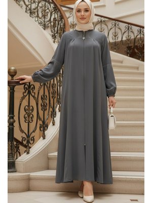 Neva Style Fermuarlı Koyu Füme Abaya 45299kfu
