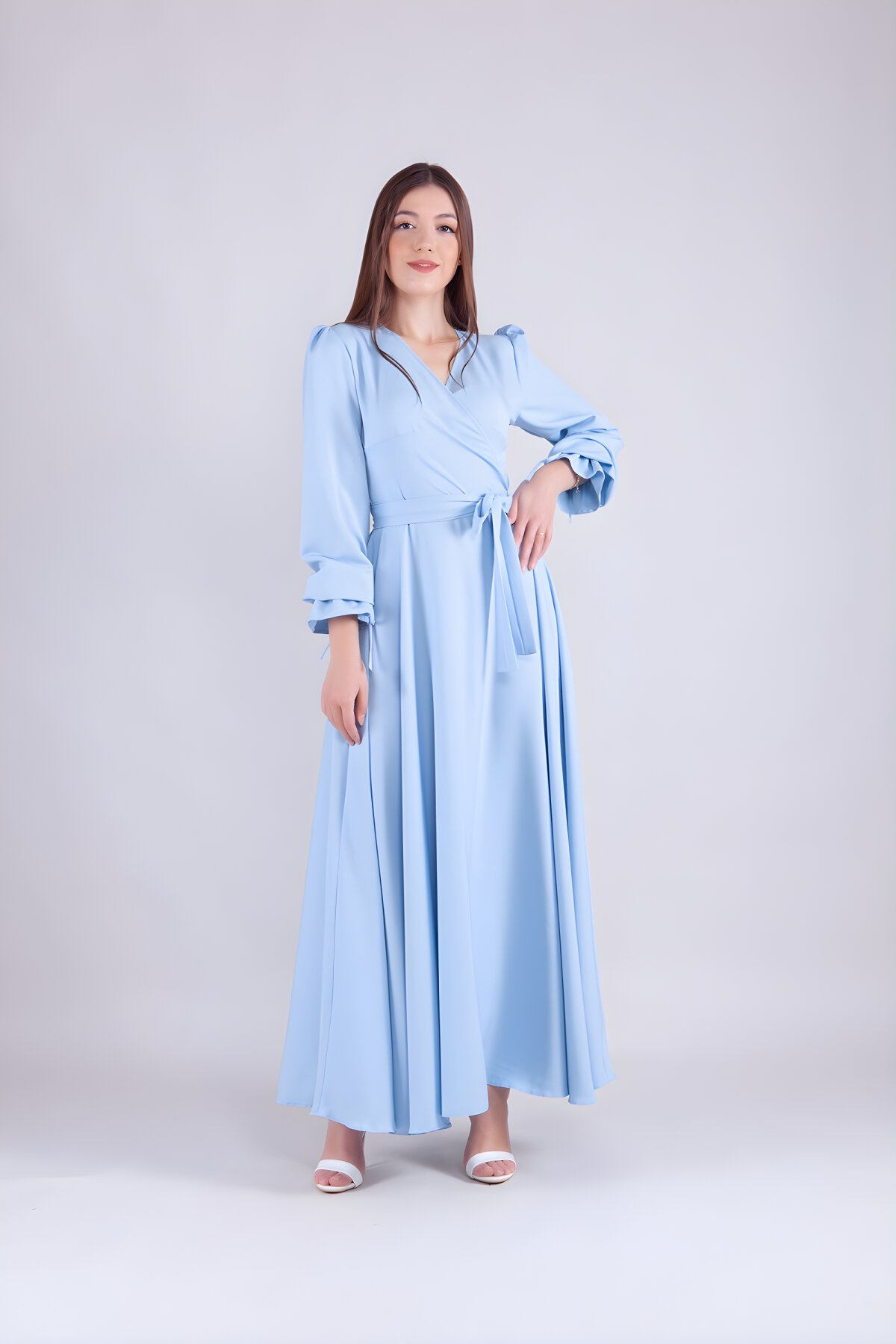 Bidoluelbise Bebe Mavi Kruvaze Yaka Uzun Kol Tesettür Elbise