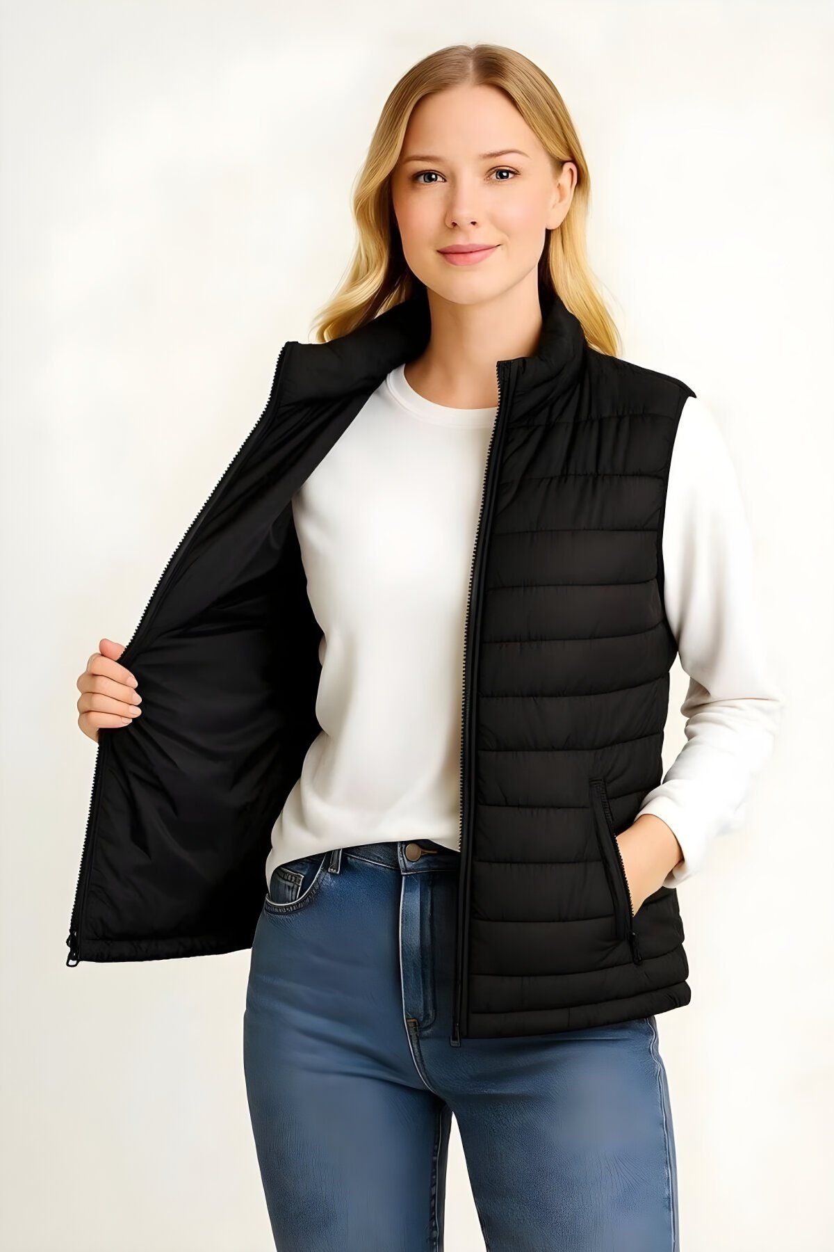 RAWEA FASHİONSu İtici Özelliğe Sahip Kapitone Astarlı Siyah Şişme Fermuarlı Tesettür Yelek