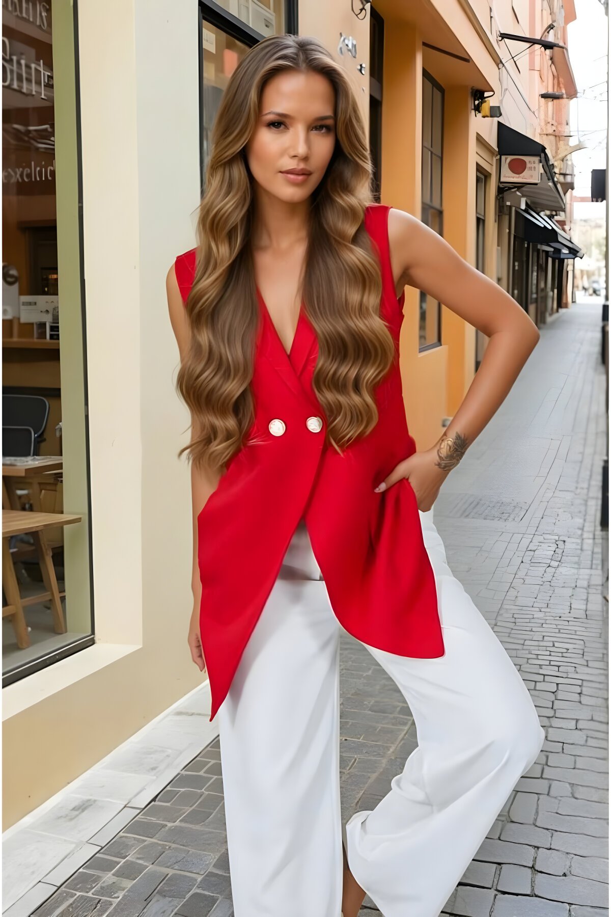 Pasaklı GiyimAtlas Kumaştan Kırmızı Tesettür Yelek