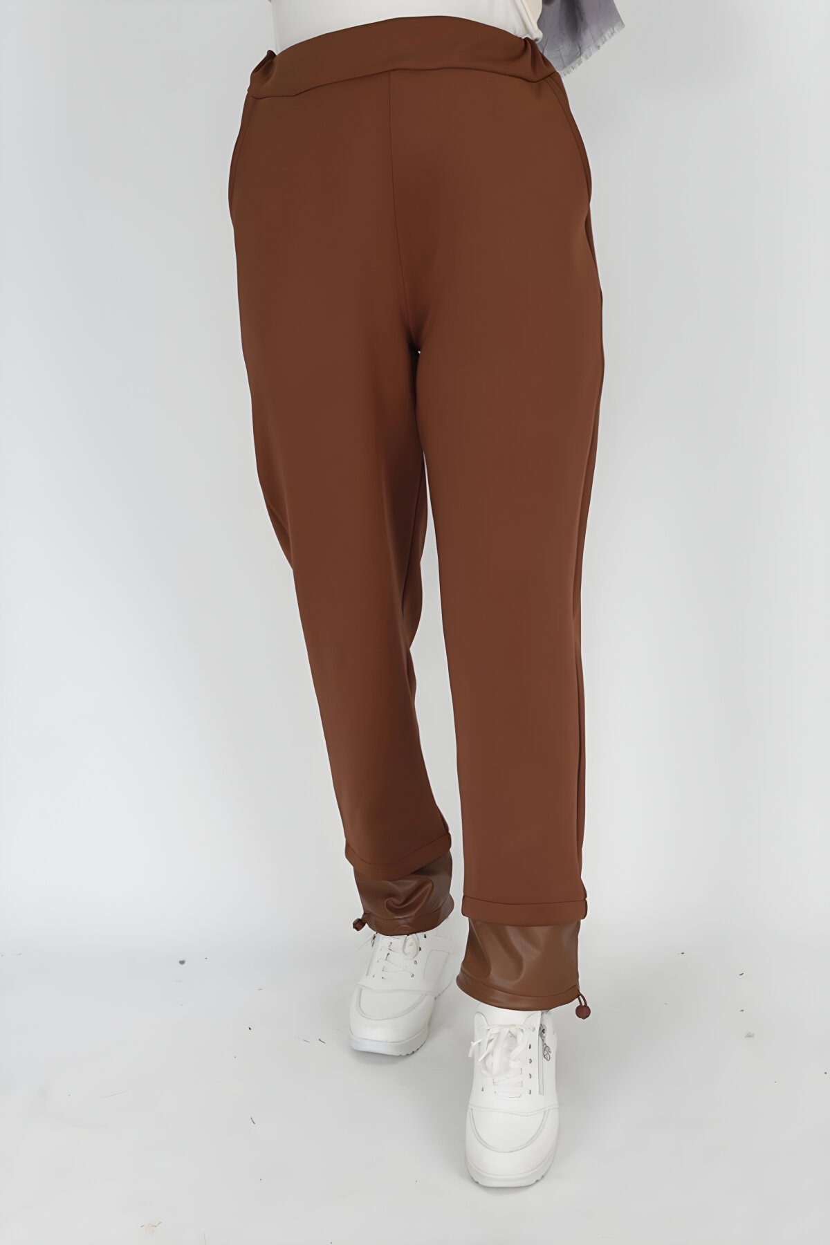 PuaneTaba Rengi Paçası Deri Detaylı Scuba Tesettür Pantolon