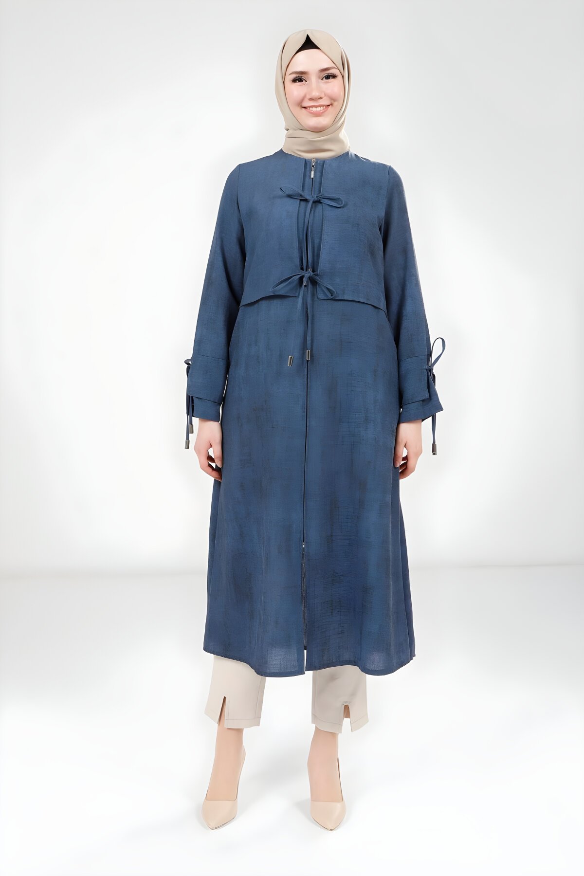 Beyza markasına ait Lacivert Düğüm Detaylı Giy Çık kap ve pardesü modeli ile günlük kombinlerinizi tamamlayın. Şık ve kolay giyilebilir bu ürün, tesettür giyimin konforunu ve zarafetini bir araya getiriyor. Modanın kalbi Devr-i Tesettür’de en uygun fiyatlarla sizi bekliyor.