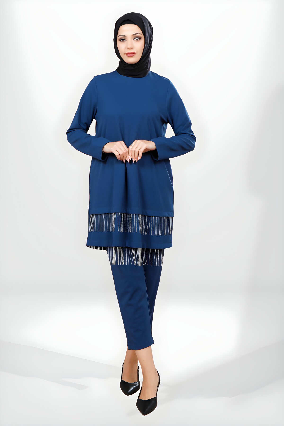 Beyzaİndigo Rengi Püskül Detaylı İkili Tesettür Takım