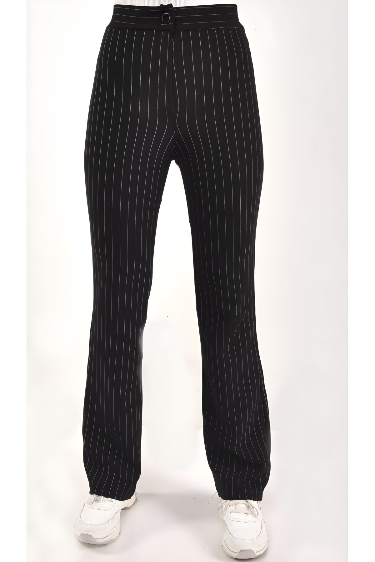 ButikSiyah Çizgili Boru Paça Tesettür Pantolon