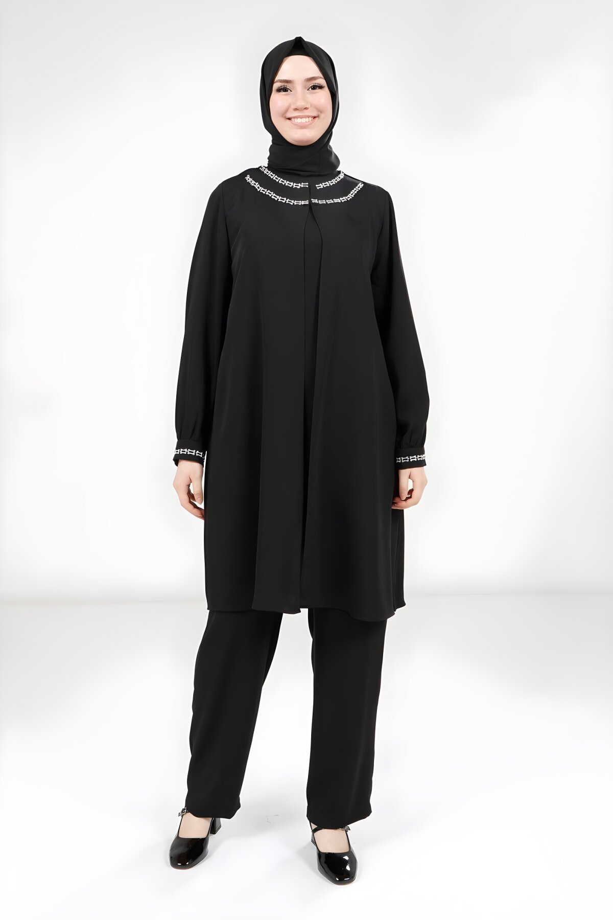 BeyzaSiyah Pantolon Bluz Alt Üst Tesettür Takımı