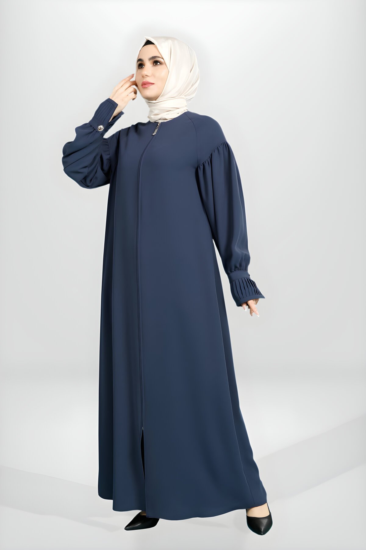 BeyzaFermuarlı, Manşeti Nervürlü ve Düğme Detaylı Petrol Ferace