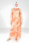 BeyzaBoynu Kuşak Detaylı Baskılı Turuncu Tesettür Elbise