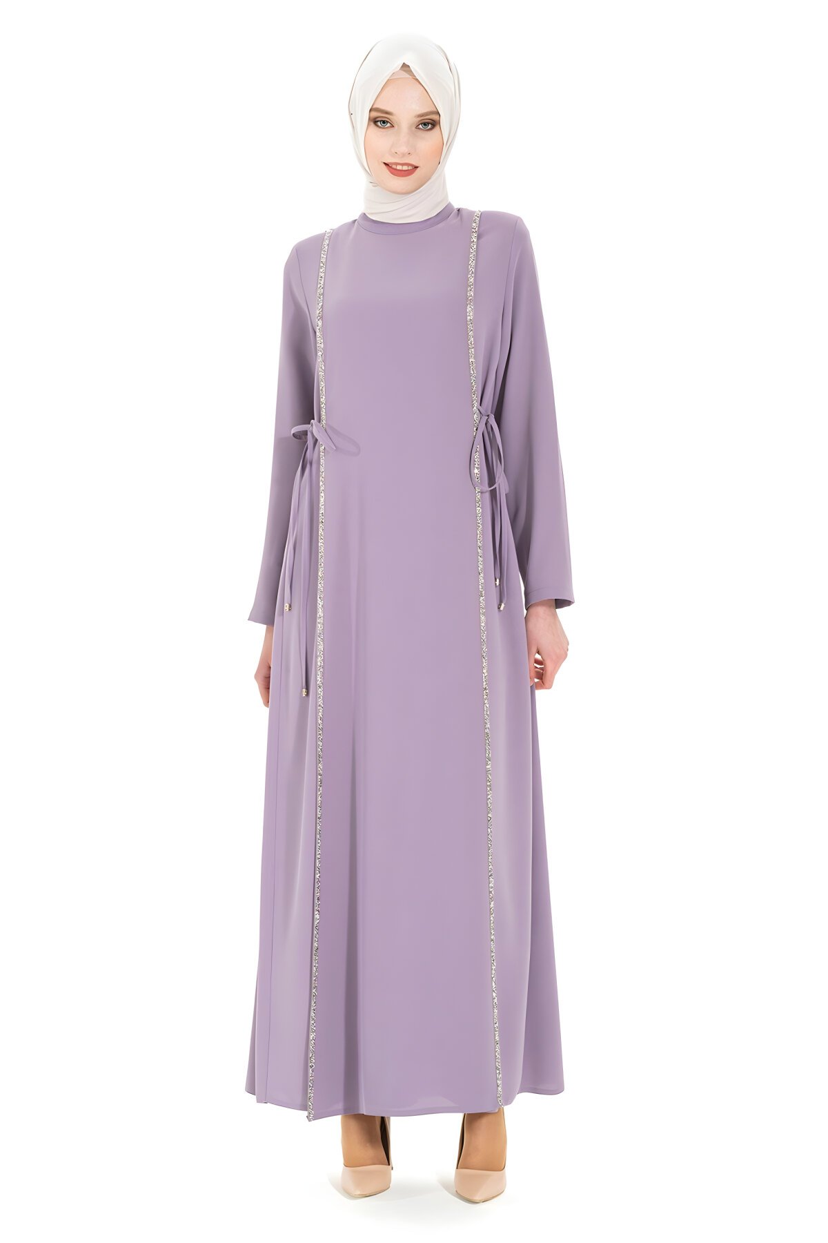 BeyzaAydan Taş Şeritli Lila Tesettür Abiye Elbise