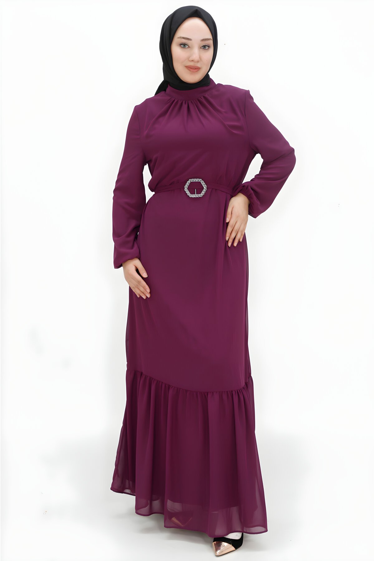 Bycoolest ButikŞifon Kumaş Mor Balon Kol Tesettür Abiye Elbise