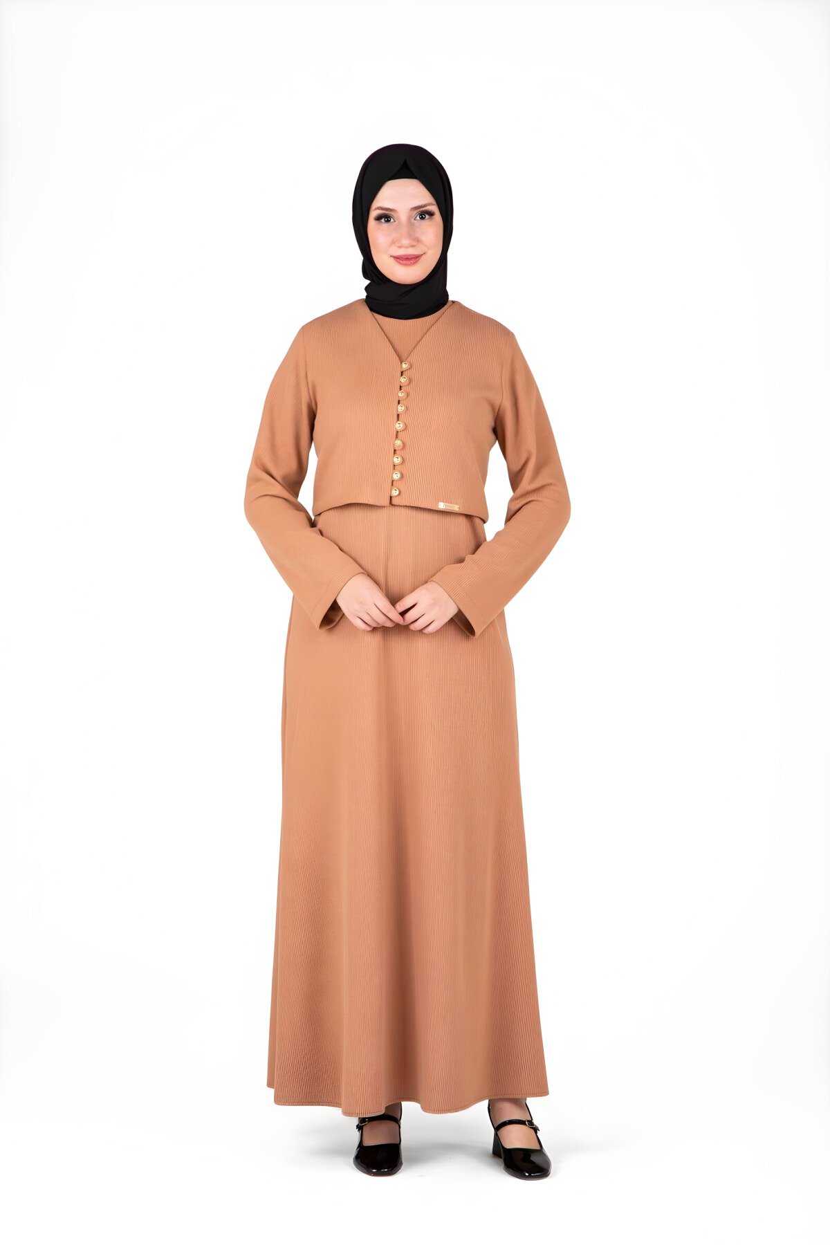 BeyzaVizon Rengi Örme Ceket Detaylı Tesettür Takım