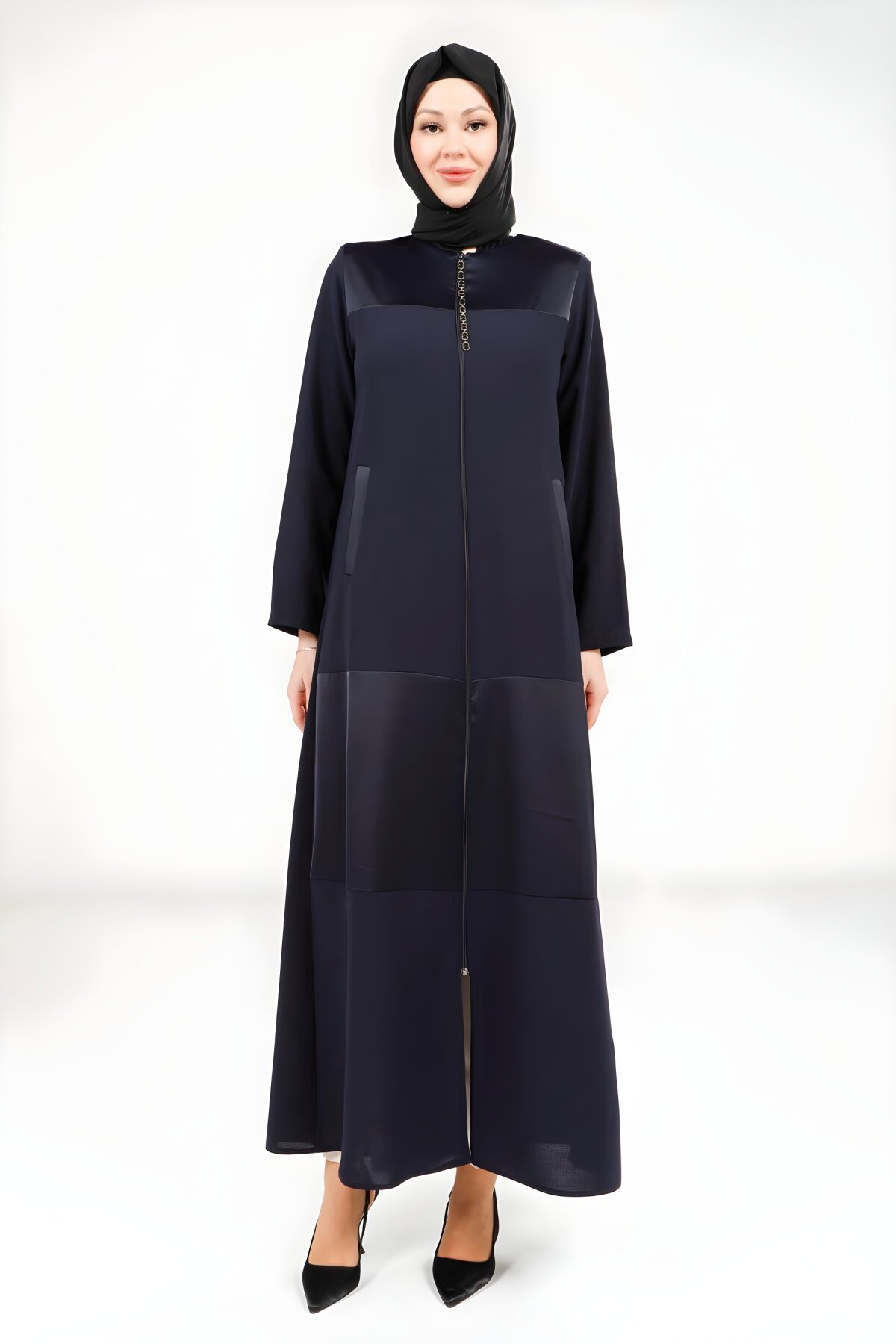 BeyzaCepli ve Fermuarlı Lacivert Ferace