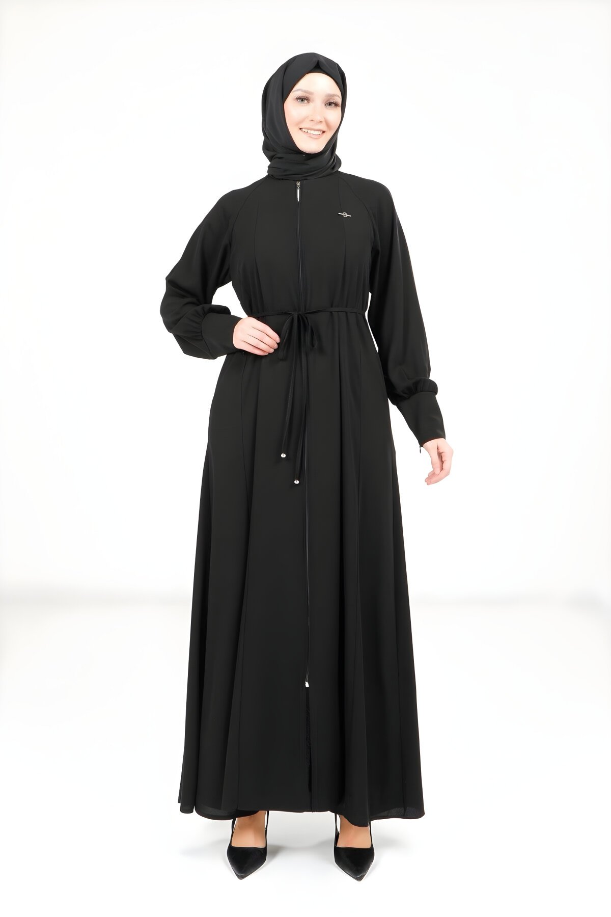 BeyzaKloş Fermuarlı Siyah Ferace