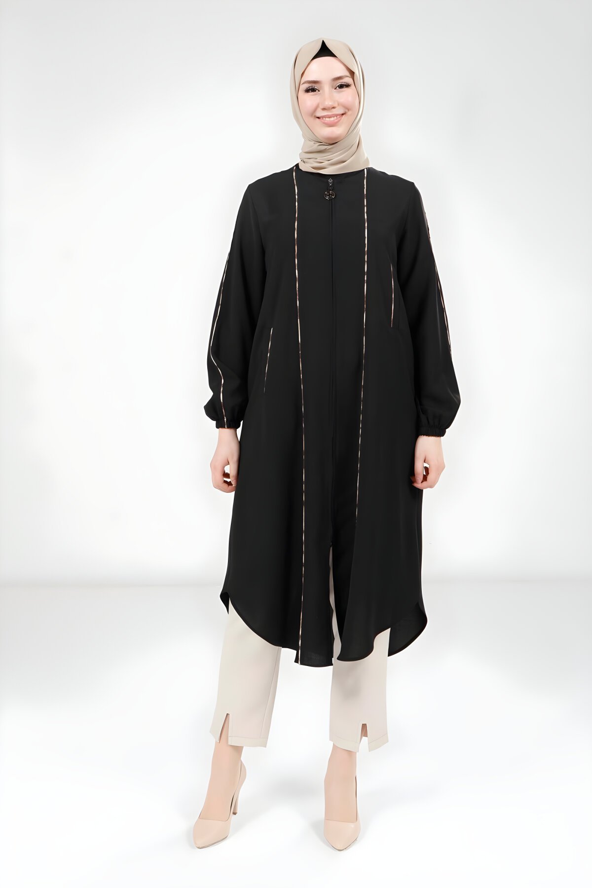 Devr-i Tesettür kalitesiyle sunulan, Beyza markasına ait bu zarif siyah biyeli giy çık kap, modern tesettür giyimin en rahat parçalarından biridir. İnce biye detayları ve kullanışlı kesimi sayesinde günlük hayatınızda şıklığı ve konforu bir arada yaşayın. Tarzınıza kolayca adapte olacak bu modeli kaçırmayın.