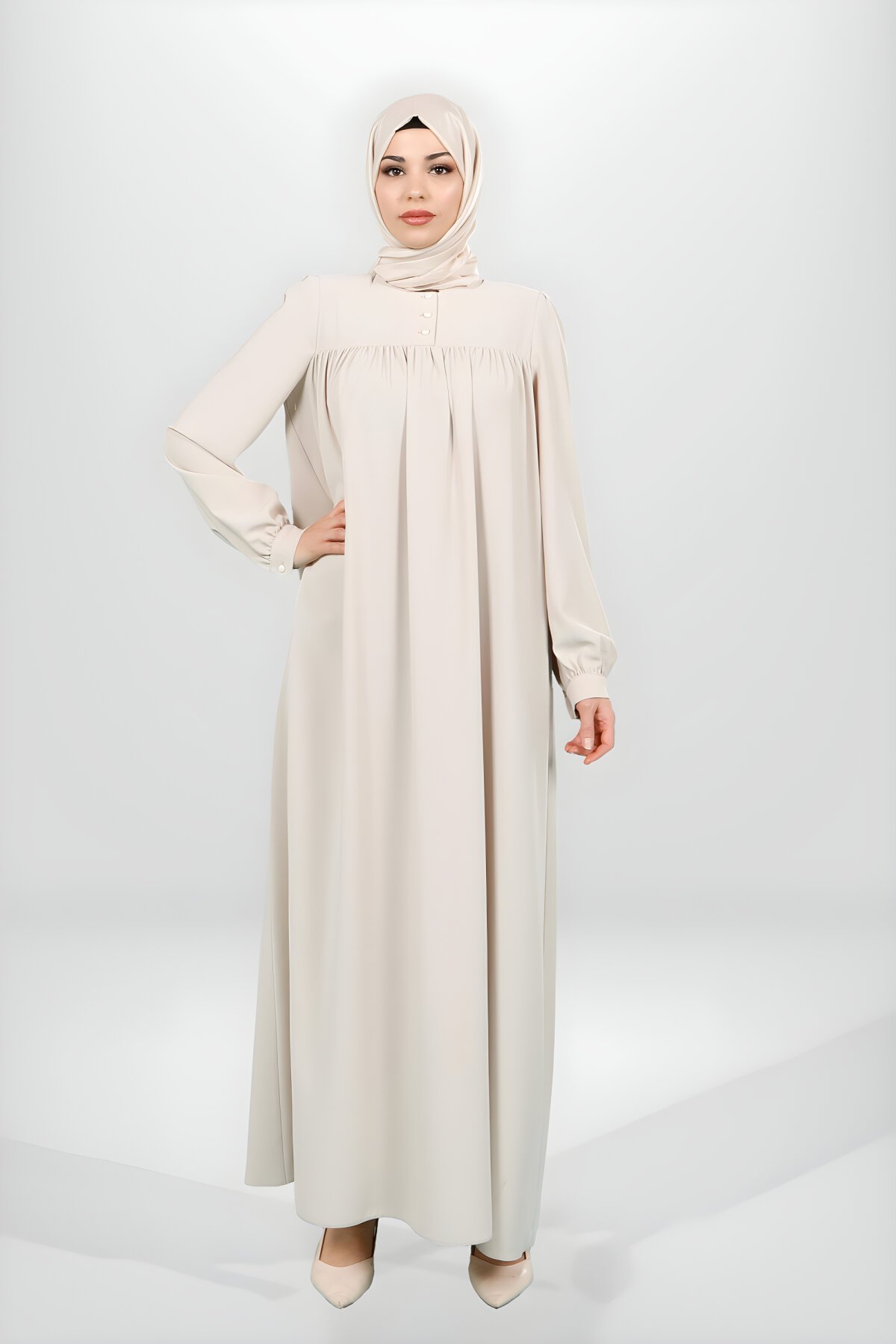 Beyza Robadan Kesim Manşeti Düğmeli Mint Yeşil Tesettür Elbise