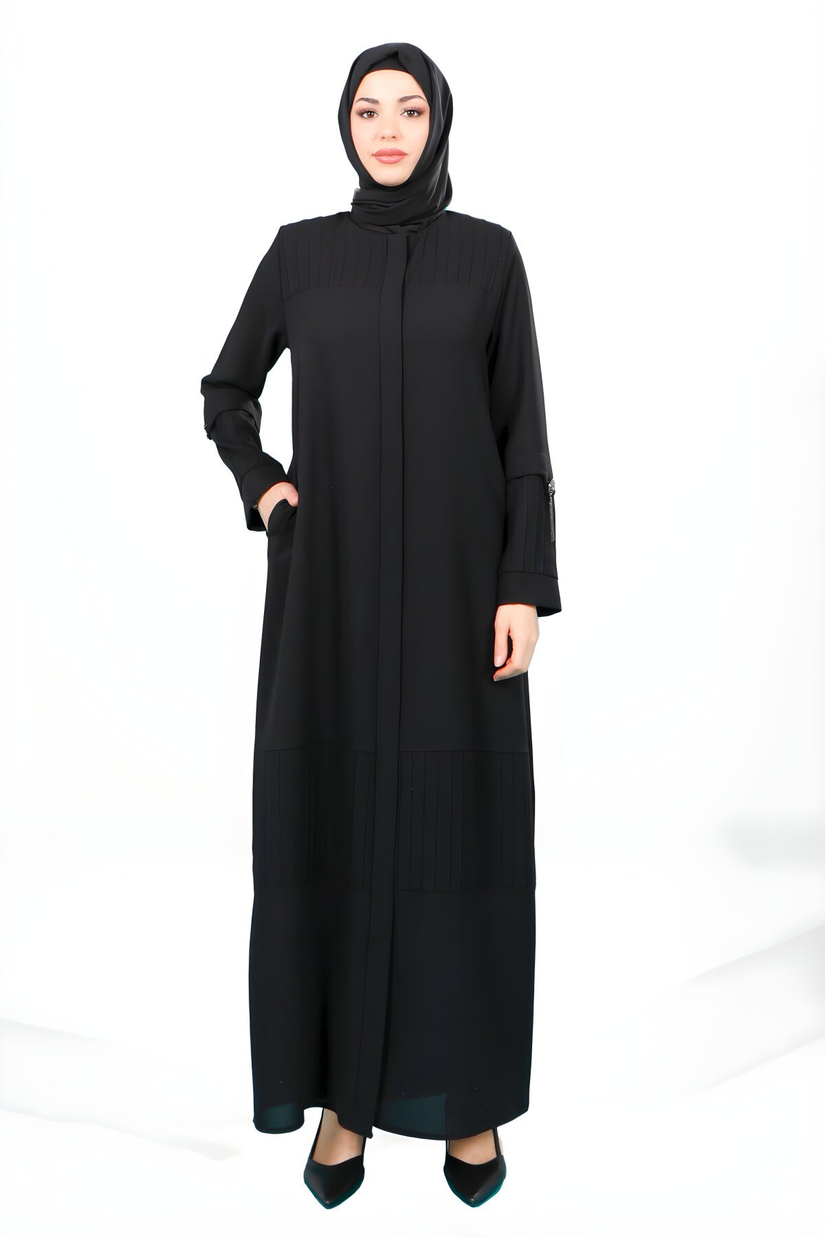 BeyzaSiyah Fermuarlı, Nervürlü ve Yandan Cepli Ferace
