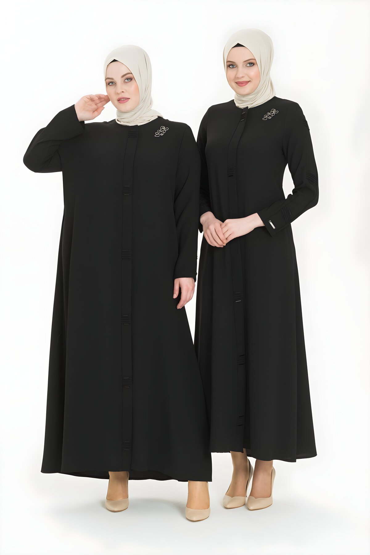 Astarsız, ön tarafı fermuarlı, cepleri bulunan, patında ve kol ortasında minik nervür detaylı, nervür üstlerinde boncuk işlemesi ve broşu bulunan şık gri ferace. Özel dokuması sayesinde kırışmaz, ütü istemez, rahat form alır. İç göstermez. Nefes Alan ve Ağırlık yapmayan kumaş özelliği ile sık kullanıma uygundur.