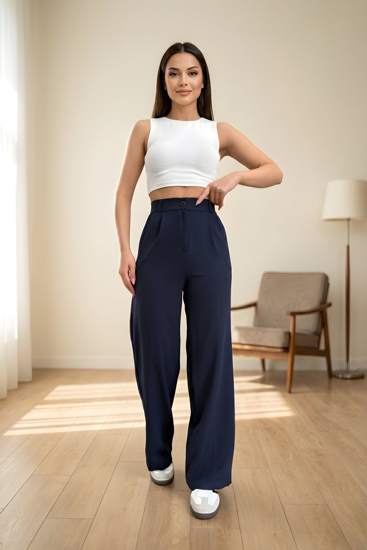 RAWEA FASHİONLacivert Arkası Lastikli Dabıl Kumaş Palazzo Tesettür Pantolon