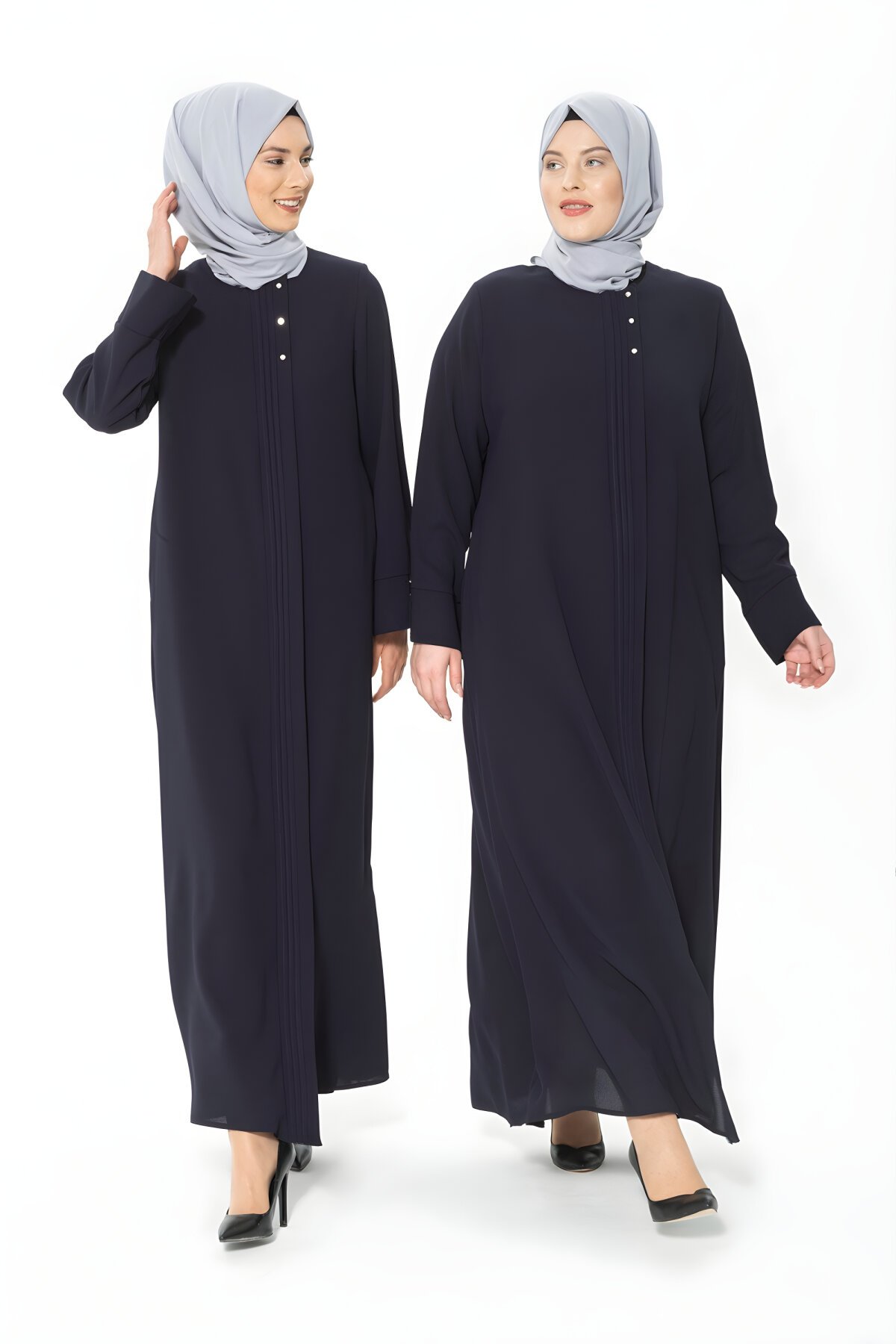 BeyzaLacivert Kalın Manşetli, Nervür ve Taş Detaylı Ferace