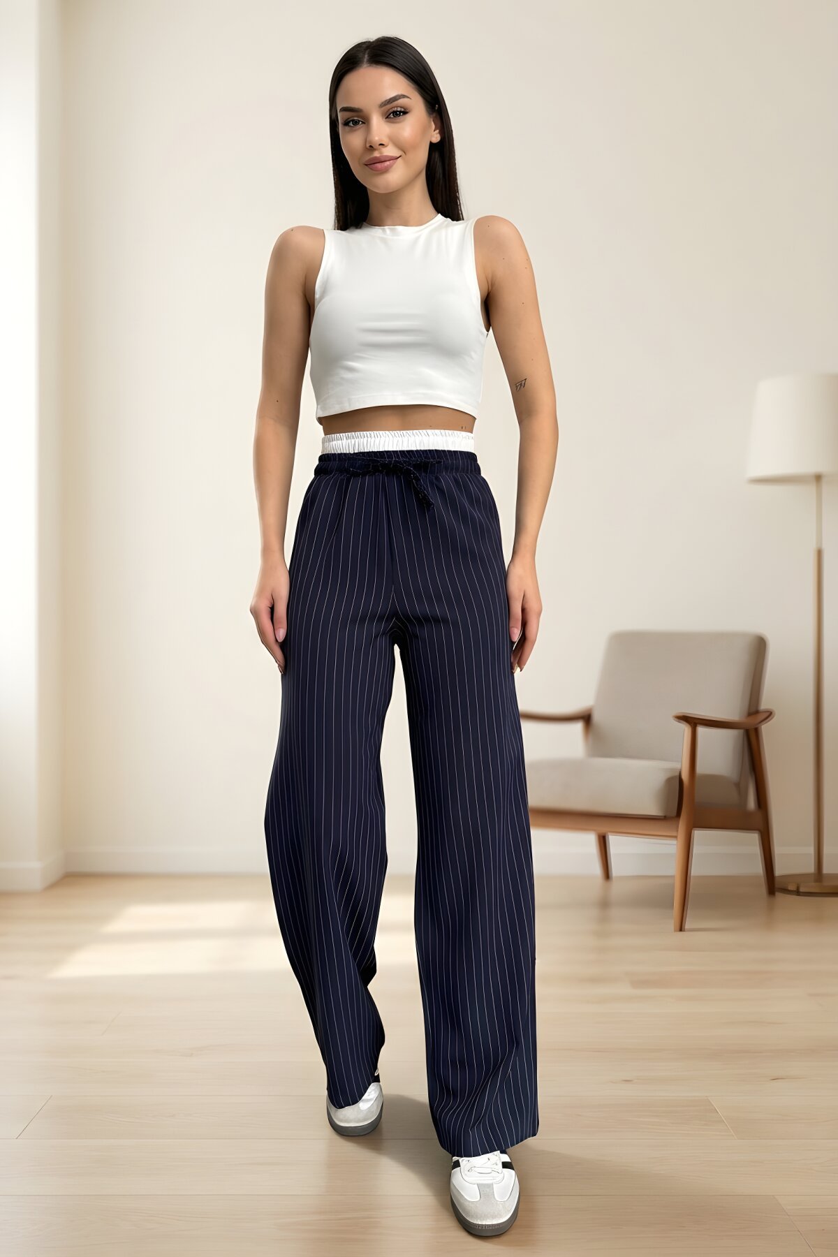 RAWEA FASHİONBağcıklı ve Garnili Detaylı Lacivert Palazzo Tesettür Pantolon